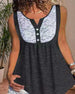 SPESIFIKASJONER Topp type: Tank Topp Stil: Uformelt, Elegant Materiale: Bomullsblandinger, Blonder Anledning: Daglig Halslinje: V-hals Mønstertype: Ensfarget Erme lengde: Ermeløs Passform type: Vanlig Årstid: Vår, Sommer Detaljer: Lappeverk, Knapper, Rynket, Blonder Pakken inkluderer: 1 x Tank-topp STØRRELSESTABELL (cm) Størrelse ...