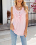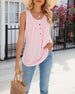 SPESIFIKASJONER Topp type: Tank Topp Stil: Uformelt Materiale: 6% Spandex,94% Polyester Anledning: Daglig Halslinje: Firkantet hals Mønstertype: Stripete Erme lengde: Ermeløs Passform type: Vanlig Årstid: Sommer Detaljer: Knapper, Rynket Pakken inkluderer: 1 x Tank-topp STØRRELSESTABELL (cm) Størrelse Bryst Lengde S 90 68 M 95 69.5 ...