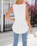 SPESIFIKASJONER Topp type: Tank Topp Stil: Elegant, Forretning Materiale: Chiffon, Polyester Anledning: Daglig, Arbeid Halslinje: V-hals Mønstertype: Ensfarget Erme lengde: Ermeløs Passform type: Vanlig Årstid: Sommer Detaljer: Lappeverk, Blonder Pakken inkluderer: 1 x Tank-topp STØRRELSESTABELL (cm) Størrelse Bryst Lengde S 94 6...