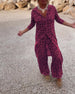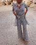 Uformelt leopardmønster med rund hals og buksesett med brede ben