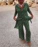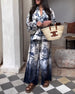 SPESIFIKASJONER Stil: Uformelt Topp type: Bluser Kategori: Sett Materiale: 100% Polyester Mønstertype: Trykt Halslinje: V-hals Ermetype: Vanlig erme Erme lengde: Langermet Bukse type: Bredt ben Bukselengde: Ni poeng Passform type: Løs Årstid: Vår,Sommer Detaljer: Lomme Anledning: Daglig Pakken inkluderer: 1 x Bluse, 1 x Bukser BLUSESTØRRE...