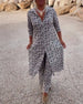SPESIFIKASJONER Stil: Vintage Topp type: Bluser Kategori: Sett Materiale: 100% Polyester Mønstertype: Trykt Halslinje: Slag Ermetype: Vanlig erme Erme lengde: 3/4 erme Bukse type: Konvensjonell Bukselengde: Lang Midje type: Midt i midjen Passform type: Vanlig Årstid: Vår,Sommer Detaljer: Knapper Anledning: Daglig Pakken inkluderer: 1 x Bluse,...