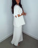 SPESIFIKASJONER Stil: Uformelt Topp type: Bluser Kategori: Sett Materiale: Bomullsblandinger Mønstertype: Ensfarget Halslinje: Rund hals Ermetype: Sommerfuglermet Erme lengde: Halv erme Bukse type: Konvensjonell Bukselengde: Lang Midje type: Midt i midjen Passform type: Løs Årstid: Sommer Detaljer: Rynket Anledning: Daglig Pakken inkluderer: 1...