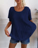 SPESIFIKASJONER Topp type: T skjorte Stil: Uformelt Materiale: Bomullsblandinger Anledning: Daglig Halslinje: U-hals Mønstertype: Ensfarget Ermetype: Vanlig erme Erme lengde: Kort erme Passform type: Vanlig Årstid: Vår, Sommer, Høst Detaljer: Rynket Pakken inkluderer: 1 x T-skjorte STØRRELSESTABELL (cm) Størrelse Bryst Lengde Arm Skulde...