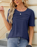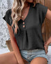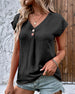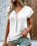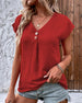 SPESIFIKASJONER Topp type: Topper Stil: Elegant,Forretning Materiale: Bomullsblandinger Anledning: Daglig,Arbeid Halslinje: V-hals Mønstertype: Ensfarget Ermetype: Vanlig erme Erme lengde: Kort erme Passform type: Vanlig Årstid: Vår,Sommer,Høst Detaljer: Knapper,Rynket Pakken inkluderer: 1 x Topp STØRRELSESTABELL (cm) Størrelse Bryst Lengde ...