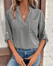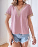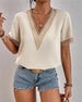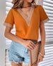 SPESIFIKASJONER Topp type: Skjorte Stil: Uformelt Materiale: Spandex, Polyester Anledning: Daglig Halslinje: V-hals Mønstertype: Ensfarget Ermetype: Vanlig erme Erme lengde: Kort erme Passform type: Vanlig Årstid: Sommer Detaljer: Lappeverk, Uthult Pakken inkluderer: 1 x Bluse STØRRELSESTABELL (cm) Størrelse Lengde Br...