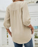 SPESIFIKASJONER Topp type: Bluser Stil: Uformelt Materiale: Bomullsblandinger Anledning: Daglig Halslinje: V-hals Mønstertype: Trykt Ermetype: Vanlig erme Erme lengde: 3/4 erme Passform type: Vanlig Årstid: Vår, Sommer, Høst Detaljer: Knapper Pakken inkluderer: 1 x Bluse STØRRELSESTABELL (cm) Størrelse Bryst Lengde S 102 65 M 1...