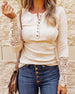 SPESIFIKASJONER Topp type: Topper Stil: Uformelt Materiale: Bomull, Polyester Anledning: Daglig Halslinje: Rund hals Mønstertype: Ensfarget Ermetype: Vanlig erme Erme lengde: Langermet Passform type: Vanlig Årstid: Vår, Høst Detaljer: Lappeverk, Knapper, Blonder Pakken inkluderer: 1 x Topp STØRRELSESTABELL (cm) ...