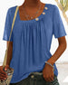 SPESIFIKASJONER Stil: Uformelt, Ferie Hals: Asymmetrisk utringning Ermetype: Vanlig erme Ermelengde: Kortermet Mønstertype: Ensfarget Anledning: Daglig, Helligdager Passform: Vanlig Detaljer: Knapper Materiale: Bomullsblandinger Sesong: Vår, sommer Pakken inneholder: 1 × Topp STØRRELSESTABELL (cm) Størrelse Brystvidde Le...