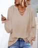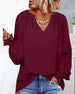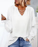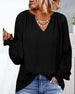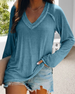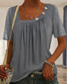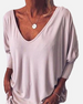 V-hals Topp med 3/4 Erme og Knapper på Ryggen