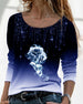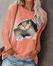 Langermet topp med rund hals og katt-mønster