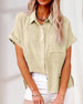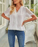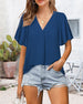 SPESIFIKASJONER Topp type: Bluser Stil: Uformelt, Forretning Materiale: Bomull, Chiffon, Polyester Anledning: Daglig, Arbeid Halslinje: V-hals Mønstertype: Ensfarget Ermetype: Volanger erme Erme lengde: Kort erme Passform type: Løs Årstid: Sommer Detaljer: Rynket Pakken inkluderer: 1 x Bluse STØRRELSESTABELL (cm) Størrelse Bryst(c...