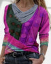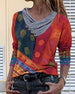 Bluse med lappeteppetrykk for kvinner