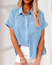 SPESIFIKASJONER Topp type: Skjorte Stil: Uformelt, Forretning Materiale: Bomull Anledning: Daglig, Arbeid Halslinje: Skjortekrage Mønstertype: Ensfarget Ermetype: Vanlig erme Erme lengde: Kort erme Passform type: Vanlig Årstid: Vår, Sommer, Høst Detaljer: Lomme, Knapper Pakken inkluderer: 1 x Bluse STØRRELSESTABELL (cm) Størrelse L...