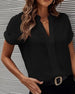 SPESIFIKASJONER Topp type: Bluser Stil: Uformelt, Forretning Materiale: Chiffon, Polyester Anledning: Daglig, Arbeid Halslinje: V-hals Mønstertype: Ensfarget Ermetype: Pufferme Erme lengde: Kort erme Passform type: Løs Årstid: Vår, Sommer, Høst Detaljer: Rynket Pakken inkluderer: 1 x Bluse STØRRELSESTABELL (cm) Størrelse Bryst Len...