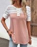 SPESIFIKASJONER Topp type: T skjorte Stil: Uformelt Materiale: Bomullsblandinger Anledning: Daglig Halslinje: V-hals Mønstertype: Stripete Ermetype: Vanlig erme Erme lengde: Kort erme Passform type: Vanlig Årstid: Vår, Sommer, Høst Detaljer: Knapper Pakken inkluderer: 1 xT skjorte STØRRELSESTABELL (cm) Størrelse Bryst Lengde S ...