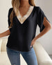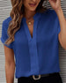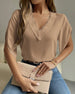 V-hals temperament kortermet skjorte i ensfarget