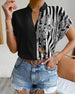Bluse med trykk med kortermet trykk