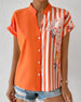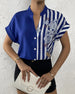 SPESIFIKASJONER Topp type: Bluser Stil: Uformelt, Forretning Anledning: Daglig, Arbeid Halslinje: V-hals Mønstertype: Fargeblokk Ermetype: Vanlig erme Erme lengde: Kort erme Passform type: Vanlig Årstid: Vår, Sommer, Høst Detaljer: Lappeverk, Knapper Materiale: Spandex, Polyester Pakken inkluderer: 1 x Bluse STØRRELSESTABELL (cm) ...