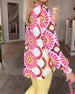 Bluse i moteprint med splitt erme