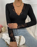 SPESIFIKASJONER Topp type: Topper Stil: Uformelt Materiale: Bomullsblandinger, Blonder Anledning: Daglig, Ferie Halslinje: V-hals Mønstertype: Ensfarget Ermetype: Vanlig erme Erme lengde: Langermet Passform type: Vanlig Årstid: Vår, Høst Detaljer: Gjennomsiktig, Blonder Pakken inkluderer: 1 x Topp STØRRELSESTABELL (cm) Størrelse B...