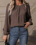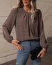 SPESIFIKASJONER Topp type: Topper Stil: Elegant, Forretning Materiale: Bomullsblandinger Anledning: Daglig, Arbeid Halslinje: Rund hals Mønstertype: Geometrisk trykk Ermetype: Lanterne erme Erme lengde: Langermet Passform type: Vanlig Årstid: Vår, Høst, Vinter Detaljer: Rynket Pakken inkluderer: 1 x Topp STØRRELSESTABELL (cm) Stør...