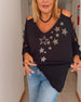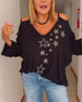 SPESIFIKASJONER Topp type: Topper Stil: Uformelt Materiale: Bomullsblandinger Anledning: Daglig Halslinje: V-hals Mønstertype: Stjerne Ermetype: Åpen skulder Erme lengde: Langermet Passform type: Vanlig Årstid: Sommer Detaljer: Skjære ut Pakken inkluderer: 1 x Topp STØRRELSESTABELL (cm) Størrelse Bryst Lengde S 95 68 M 100 69.5 L 105 7...