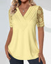 SPESIFIKASJONER Topp type: Topper Stil: Elegant Materiale: Bomullsblandinger, Blonder Anledning: Daglig Halslinje: V-hals Mønstertype: Ensfarget Ermetype: Vanlig erme Erme lengde: Kort erme Passform type: Vanlig Årstid: Vår, Sommer, Høst Detaljer: Lappeverk Pakken inkluderer: 1 x Topp STØRRELSESTABELL (cm) Størrelse Bryst Len...