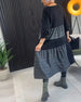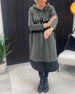 Ensfarget kjole med rund hals og lange ermer og lomme