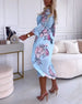 SPESIFIKASJONER Stil: Uformelt, Ferie Materiale: 100% Polyester Kjole type: A-line Kjolens lengde: Midi Halslinje: V-hals Mønstertype: Trykt Ermetype: Vanlig erme Erme lengde: 3/4 erme Passform type: Vanlig Årstid: Vår, Sommer Anledning: Daglig, Ferie Pakken inkluderer: 1 x Kjole STØRRELSESTABELL (cm) Størrelse Bryst Lengde Arm ...