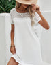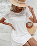 SPESIFIKASJONER Stil: Elegant Materiale: Bomullsblandinger Kjole type: A-line Kjolens lengde: Knelengde Halslinje: Rund hals Mønstertype: Ensfarget Ermetype: Vanlig erme Erme lengde: Kort erme Detaljer: Blonder Passform type: Vanlig Årstid: Vår, Sommer Anledning: Daglig, Ferie Pakken inkluderer: 1 x Kjole STØRRELSESTABELL (cm) Størrelse...
