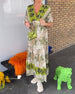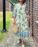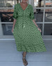 SPESIFIKASJONER Stil: Uformelt, Elegant Materiale: Bomullsblandinger Kjole type: A-line Kjolens lengde: Maxi Halslinje: V-hals Mønstertype: Trykt Ermetype: Volanger erme Erme lengde: 3/4 erme Detaljer: Dusk, Rynket, Snøring Passform type: Vanlig Årstid: Vår, Sommer Anledning: Daglig, Ferie Pakken inkluderer: 1 x Kjole STØRRELSESTABELL (cm) ...