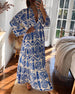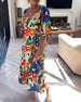 SPESIFIKASJONER Stil: Uformelt, Ferie Materiale: Bomullsblandinger Kjole type: A-line Kjolens lengde: Maxi Halslinje: V-hals Mønstertype: Trykt Ermetype: Utvidet erme Erme lengde: 3/4 erme Detaljer: Rynket Passform type: Løs Årstid: Vår, Sommer Anledning: Daglig, Ferie Pakken inkluderer: 1 x Kjole STØRRELSESTABELL (cm) Størrelse Bryst Le...