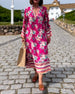 SPESIFIKASJONER Stil: Uformelt, Ferie Materiale: Bomullsblandinger Kjole type: Rett Kjole Kjolens lengde: Maxi Halslinje: V-hals Mønstertype: Trykt Ermetype: Lanterne erme Erme lengde: Langermet Passform type: Vanlig Årstid: Vår, Sommer, Høst Anledning: Daglig, Ferie Pakken inkluderer: 1 x Kjole STØRRELSESTABELL (cm) Størrelse Brys...