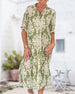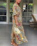 SPESIFIKASJONER Stil: Uformelt Materiale: Bomullsblandinger Kjole type: Rett Kjole Kjolens lengde: Maxi Halslinje: V-hals Mønstertype: Blader, Trykt Ermetype: Vanlig erme Erme lengde: Kort erme Detaljer: Knapper Passform type: Vanlig Årstid: Vår, Sommer, Høst Anledning: Daglig Pakken inkluderer: 1 x Kjole STØRRELSESTABELL (cm) Stø...