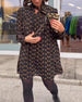 Kjole med langermet og houndstooth -mønster