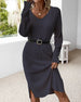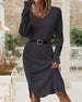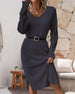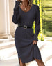 SPESIFIKASJONER Stil: Uformelt, Elegant Materiale: Bomullsblandinger Kjole type: A-line Kjolens lengde: Knelengde Halslinje: V-hals Mønstertype: Ensfarget Ermetype: Vanlig erme Erme lengde: Langermet Detaljer: Spalte Passform type: Vanlig Årstid: Vår, Høst, Vinter Anledning: Daglig, Arbeid Pakken inkluderer: 1 x Kjole STØRRELSESTABELL (cm)...