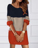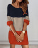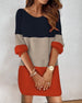 Uformell kjole med rund hals i fargeblokk