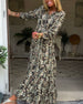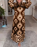 V-hals printet uformelt lang kjole