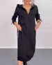 SPESIFIKASJONER Stil: Uformelt Materiale: 100% Polyester Kjole type: Skjorte Kjolens lengde: Knelengde Halslinje: Slag Mønstertype: Ensfarget Ermetype: Vanlig erme Erme lengde: Langermet Detaljer: Knapper, Spalte Passform type: Løs Årstid: Vår, Høst, Vinter Anledning: Daglig Pakken inkluderer: 1 x Kjole STØRRELSESTABELL (cm) St...