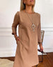 SPESIFIKASJONER Stil: Uformelt Materiale: Bomullsblandinger Kjole type: Rett Kjole Kjolens lengde: Midi Halslinje: Rund hals Mønstertype: Ensfarget Ermetype: Vanlig erme Erme lengde: Langermet Passform type: Vanlig Årstid: Vår, Høst, Vinter Anledning: Daglig, Arbeid Pakken inkluderer: 1 x Kjole STØRRELSESTABELL (cm) Størrelse Bryst Leng...