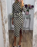 SPESIFIKASJONER Stil: Elegant Materiale: 95% polyester, 5% spandex Kjole type: A-line Kjolens lengde: Midi Halslinje: Slag Mønstertype: Geometrisk trykk Ermetype: Vanlig erme Erme lengde: Langermet Detaljer: Lomme, Knapper Passform type: Vanlig Årstid: Vår, Høst, Vinter Anledning: Daglig Pakken inkluderer: 1 x Kjole STØRRELSESTABELL (cm) ...
