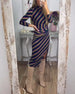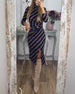 SPESIFIKASJONER Stil: Elegant, Sexy Materiale: Bomullsblandinger Kjole type: Bodycon Kjolens lengde: Midi Halslinje: Høy hals Mønstertype: Stripete Ermetype: Vanlig erme Erme lengde: Langermet Detaljer: Rynket Passform type: Skinny Årstid: Høst, Vinter Anledning: Daglig Pakken inkluderer: 1 x Kjole STØRRELSESTABELL (cm) Størrelse Bryst ...