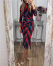 SPESIFIKASJONER Stil: Elegant, Fest Materiale: 95 % polyester, 5 % elastan Kjole type: Omslags- Kjolens lengde: Midi Halslinje: V-hals Mønstertype: Trykt Ermetype: Vanlig erme Erme lengde: Langermet Detaljer: Spalte, Rynket Passform type: Vanlig Årstid: Vår, Høst Anledning: Daglig, Ferie, Parti Pakken inkluderer: 1 x Kjole STØRRELSESTABEL...