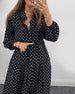 SPESIFIKASJONER Stil: Elegant, Forretning Materiale: Bomullsblandinger Kjole type: A-line Kjolens lengde: Midi Halslinje: Slag Mønstertype: Prikk Ermetype: Vanlig erme Erme lengde: Langermet Detaljer: Snøre opp Passform type: Vanlig Årstid: Vår, Høst, Vinter Anledning: Daglig Pakken inkluderer: 1 x Kjole STØRRELSESTABELL (cm) Stør...