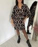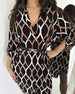 SPESIFIKASJONER Stil: Elegant, Forretning Materiale: Bomullsblandinger Kjole type: Rett Kjole Kjolens lengde: Knelengde Halslinje: V-hals Mønstertype: Geometrisk trykk Ermetype: Vanlig erme Erme lengde: Langermet Passform type: Vanlig Årstid: Vår, Høst, Vinter Anledning: Daglig, Arbeid Pakken inkluderer: 1 x Kjole (belte ikke inkludert) ST...