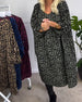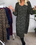 SPESIFIKASJONER Stil: Uformelt Materiale: Bomullsblandinger Kjole type: A-line Kjolens lengde: Midi Halslinje: V-hals Mønstertype: Trykt Erme lengde: Langermet Passform type: Løs Årstid: Vår, Høst, Vinter Anledning: Daglig Pakken inkluderer: 1 x Kjole STØRRELSESTABELL (cm) Størrelse Bryst Lengde S 95 108 M 100 109 L 105 110 XL 1...