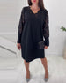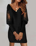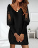 SPESIFIKASJONER Stil: Elegant Materiale: Bomullsblandinger, Blonder Kjole type: Rett Kjole Kjolens lengde: Knelengde Halslinje: V-hals Mønstertype: Ensfarget Ermetype: Lanterne erme Erme lengde: Langermet Detaljer: Lappeverk, Uthult Passform type: Vanlig Årstid: Vår, Sommer, Høst, Vinter Anledning: Daglig Pakken inkluderer: 1 x Kjole STØRR...