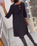 SPESIFIKASJONER Stil: Uformelt Materiale: Bomullsblandinger Kjole type: Rett Kjole Kjolens lengde: Over kneet Halslinje: Rund hals Mønstertype: Ensfarget Ermetype: Vanlig erme Erme lengde: Langermet Detaljer: Lappeverk, Rynket Passform type: Løs Årstid: Høst, Vinter Anledning: Daglig Pakken inkluderer: 1 x Kjole STØRRELSESTABELL (cm) St...