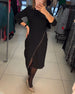 SPESIFIKASJONER Stil: Elegant, Sexy Materiale: Bomullsblandinger Kjole type: Rett Kjole Kjolens lengde: Knelengde Halslinje: Rund hals Mønstertype: Ensfarget Ermetype: Vanlig erme Erme lengde: 3/4 erme Detaljer: Uthult Passform type: Vanlig Årstid: Høst, Vinter Anledning: Daglig Pakken inkluderer: 1 x Kjole STØRRELSESTABELL (cm) Størrel...